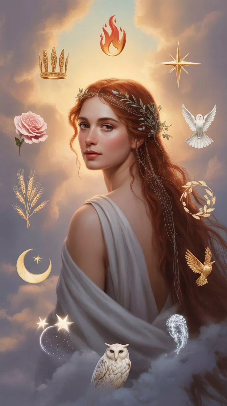 Deusa da primavera e renovação, sua luz está na transformação constante. Sua sombra se revela no medo do desconhecido e na dificuldade de encarar a escuridão.