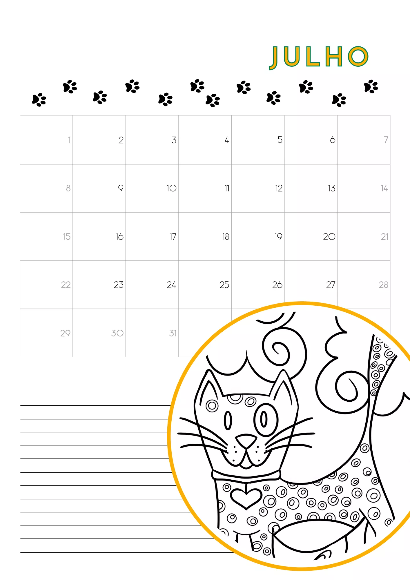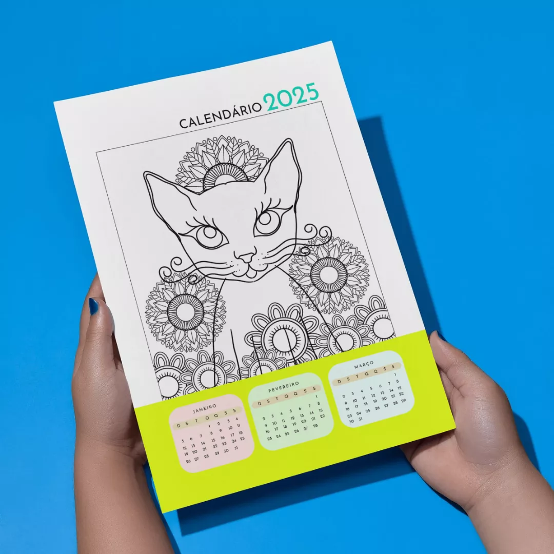 Você pode imprimir o seu calendário quantas vezes desejar. O produto porém não pode ser impresso para venda, por proteção de direitos autorais.