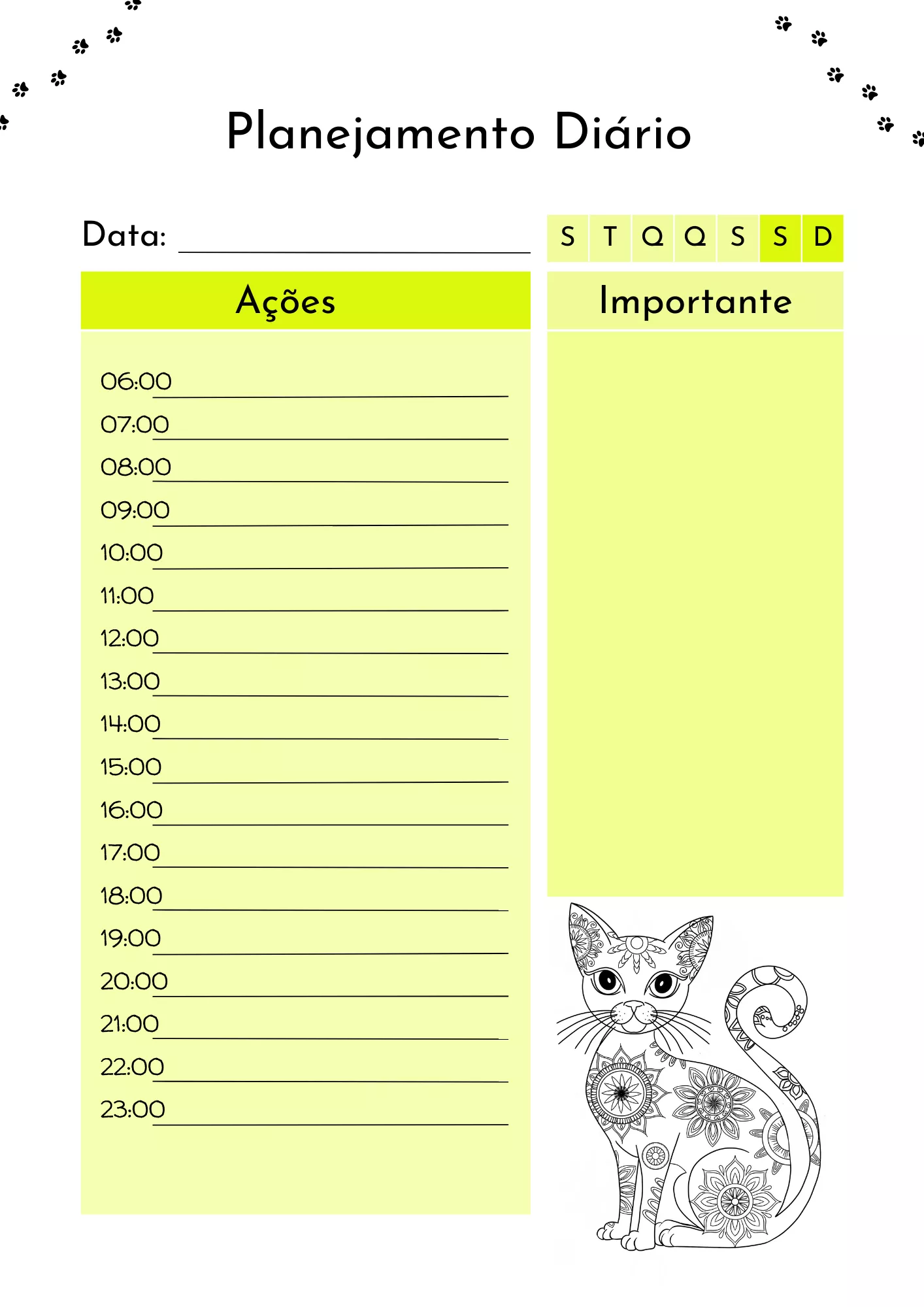 Organize-se com a graciosidade de um gato se alongando ao sol, mantendo a mente livre e pronta para focar no que realmente importa.